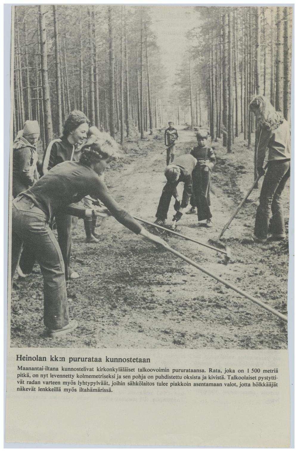 Syksyllä kisalaiset raivasivat talkoilla latupohjat paikallisen huoltoaseman pihasta latureiteille. Moottoritien rakennuttua latureittejä oli hankala tehdä.