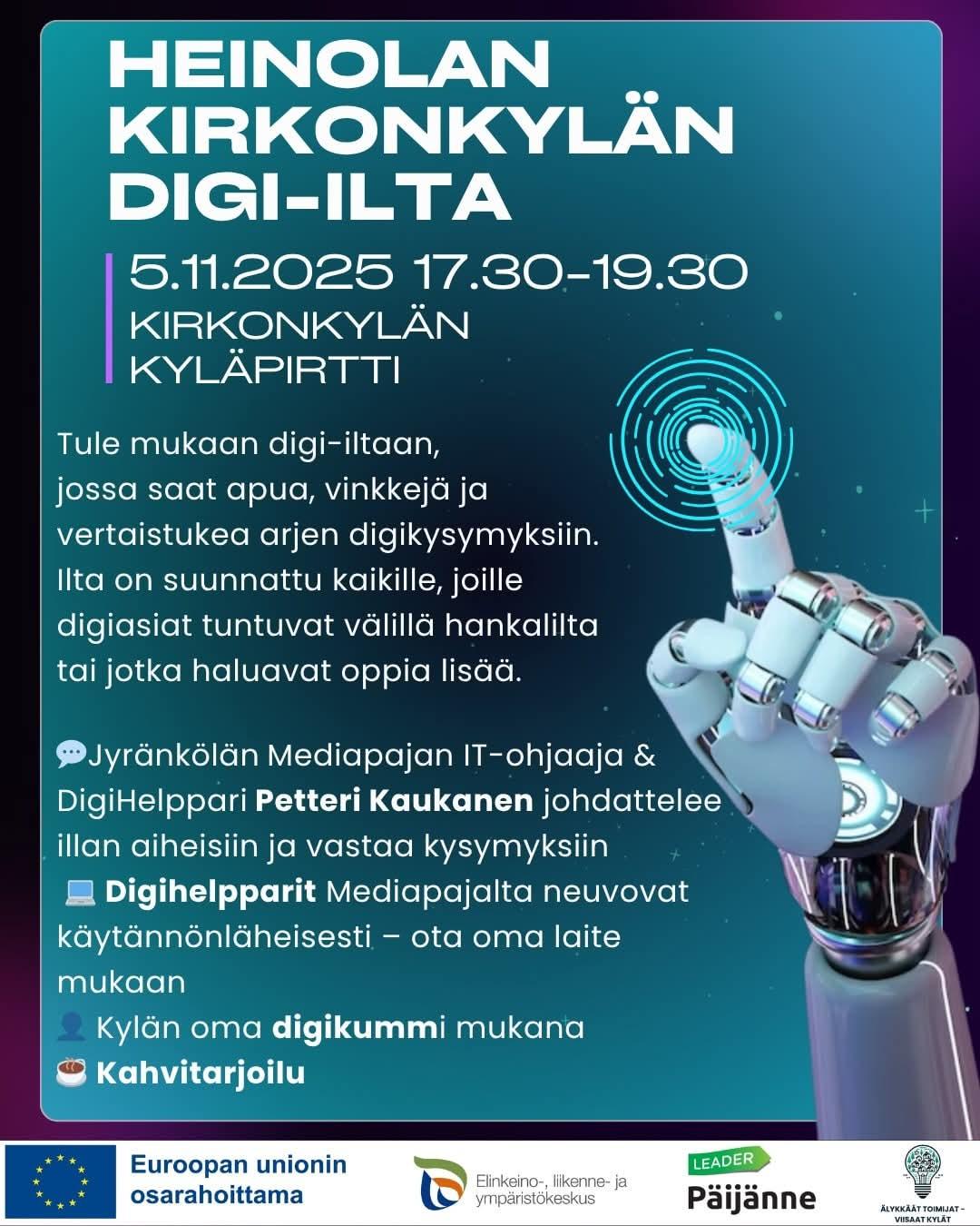 Heinolan kirjasto tarjoaa digiopastusta myös kirjastoautossa. Ota oma kännykkä tai läppäri mukaan. Mediaohjaaja Marko Nakari p. 044 4694374 auttaa sinua. Tarvitsetko apua älypuhelimen, tabletin tai…