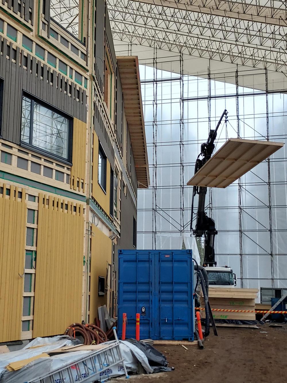 - Puukoulusta kun on kyse, sopivaa ilman lämpötilaa ja kosteutta pitää seurata koko ajan ja reagoida, jotta puuelementit eivät halkeile. Seiniä on myös rakentamisen tohinassa varottava, jotteivat ne saa kolhuja. Paljon on asennettu myös palolevyjä mahdollisen tulipalon estämiseksi, kuvailee Viitanen työnkulun haasteita.