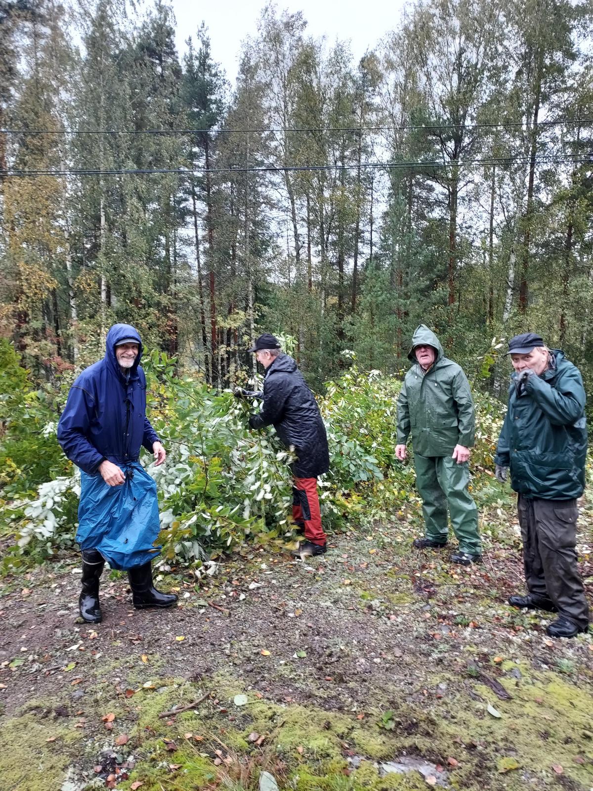 Tarkkaan ottaen pohjatyön raivaukselle olivat tehneet Itä-Hämeen Helmi-hankkeessa töitä tekevät immeiset, jotka olivat katkoneet risut valmiiksi maahan. Talkooväki keskittyi puun ja pensasrankojen keräilyyn tien varrelle, josta kaupungin työntekijät kuljettavat puuaineksen haketukseen.