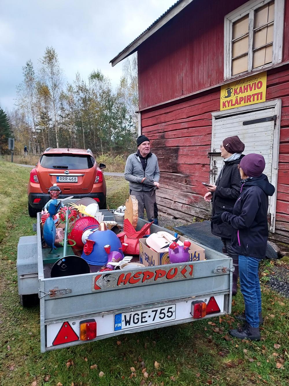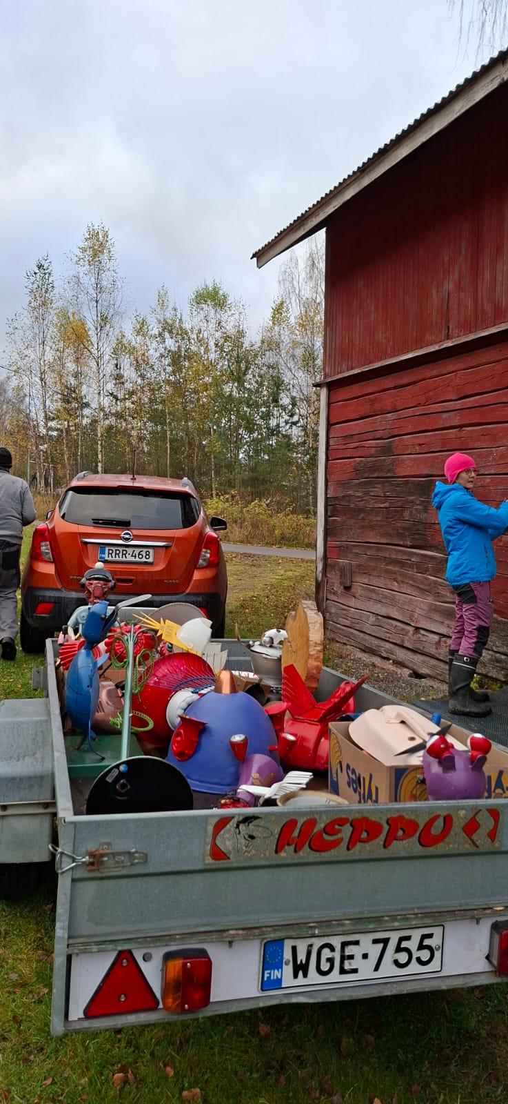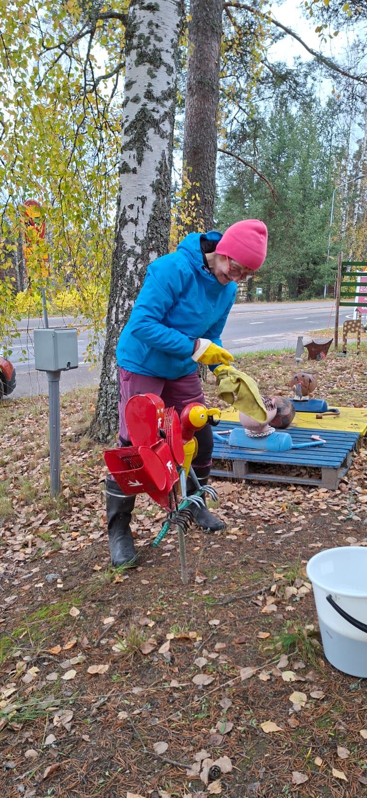 Kyläpirtin raitin väriläiskät, ITE-taiteilija Vesa Väänäsen teokset, on pesty ja laitettu talviteloille odottamaan uutta kesää ja uutta esille panoa.